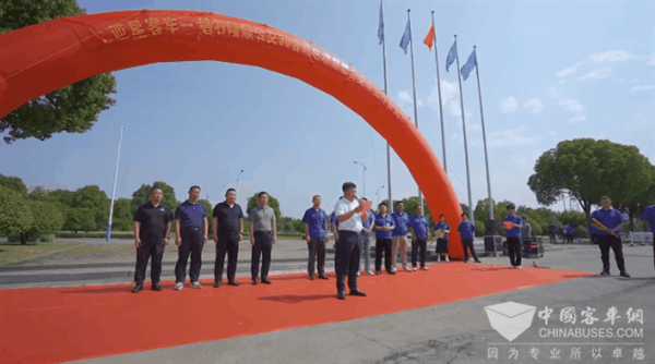 扬州亚星客车股份有限公司总经理贾开潜先生介绍:“2021年12月7日在亚星公司举行32辆YBL6829GHBEV8米纯电动豪华定制公交车的发车仪式。时隔191天,我们又相聚亚星,在这里举行30辆YBL6119GHBEV11米纯电动豪华定制公交车发车仪式……”