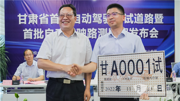 2022年6月17日,甘肃省首条自动驾驶测试路段暨自动驾驶路测牌照发放仪式,在甘肃省智慧交通与智能网联汽车综合测试应用示范基地圆满举行。甘肃省首条自动驾驶测试道路——兰州新区城市开放道路测试区测试与示范应用道路正式公布,宇通获得“甘A0001试”号牌,这也是甘肃省首张自动驾驶路测牌照。这标志着甘肃成为我国西北地区除宁夏外,第二个正式发放自动驾驶路测牌照的省份,也标志着宇通又斩获了一张自动驾驶路测牌照,宇通自动驾驶客车加速进入商业化实际运营阶段。未来,宇通将携手智慧交通与智能网联汽车综合测试应用示范基地,助力甘肃省无人驾驶产业发展。