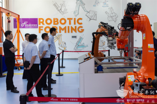 开沃集团一行首先了解了南航的校史和未来发展的布局,参观了学院柔性成形与装备等实验室,并与各实验室教师就新能源汽车及零部件电池pack领域的新材料研发与成形制造技术应用进行了深入探讨与交流。