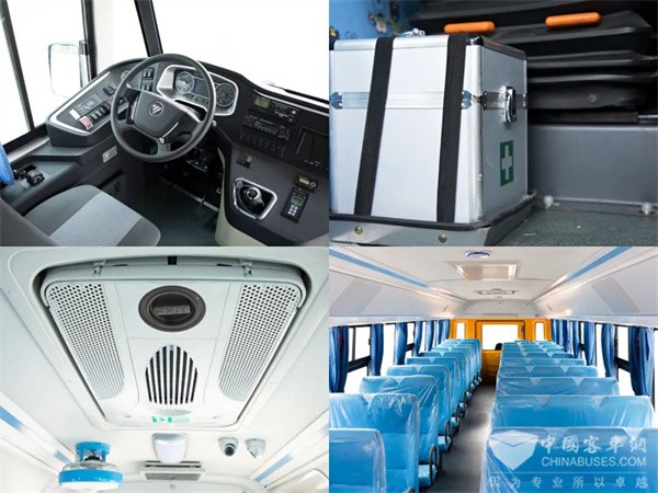 同时,该车采用乘用车化座舱,座椅结构为骨架式结构 + 聚氨酯海绵整体成型,品质更加可靠。此外,该车地板革和风道均采用 PVC 材质,搭配灭菌座椅面料,保证了车内的气味清新,健康关怀悉心到每个细节,在疫情“新常态”下时时刻刻照顾孩童安全。