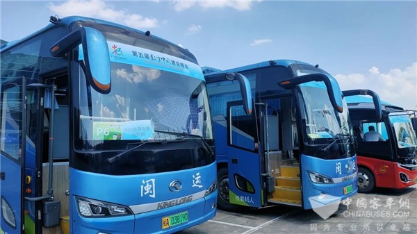 展会现场金龙客车提供通勤服务保障