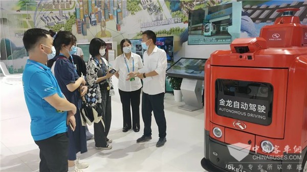 在本届数字峰会上,金龙自动驾驶系列产品集中亮相,紧密围绕着“数字中国”建设和企业数字化转型发展,展现了金龙的极具“科技范”的代表性成果!在现场,阿波龙Ⅱ、自动驾驶清扫消毒车、金龙智慧远程驾驶舱等产品以极简精巧的外观设计和数字化、智慧化的功能吸引了与会嘉宾和观众的注意。在几款产品中,最为亮眼的当属首次亮相数字中国建设成就巡礼专题展的金龙DIDO自动驾驶物流车。
