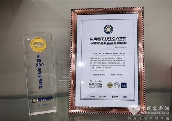 显国企担当 彰品牌风采!金旅客车上榜2022年中国品牌价值500强