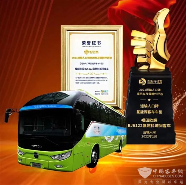 1月7日,福田欧辉BJ6122氢燃料客车荣获“运输人口碑氢能源客车车型”;