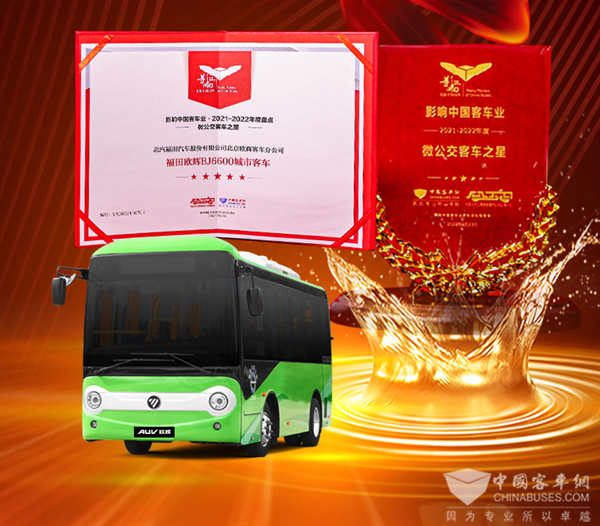2月23日,福田欧辉BJ6600城市客车在“第 16 届影响中国客车业年度盘点”活动中,荣膺 “微公交客车之星”奖项;