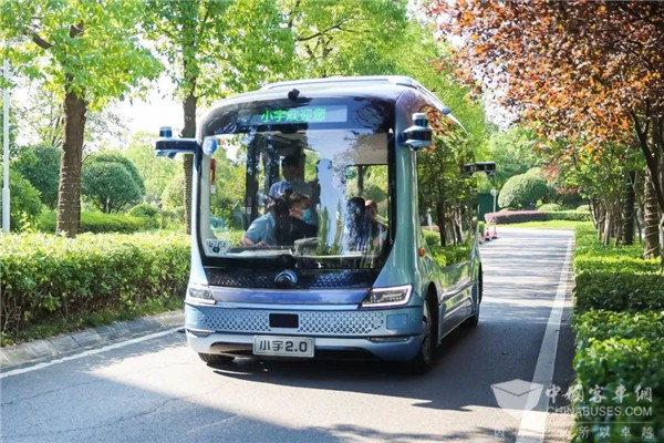 图 | 与会嘉宾们乘坐宇通自动驾驶巴士小宇2.0