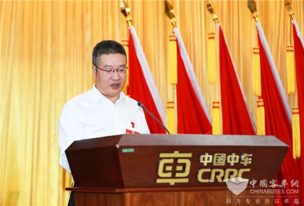 王铵同志代表中国中车党委向大会的召开表示热烈祝贺,充分肯定了中车电动的发展成果。他指出,中车电动作为集团“一核三极多点”业务结构中重要的产业增长极,持续深化三项制度改革,推进企业转型发展,努力打造成为城市绿色交通装备高端制造商和全寿命周期解决方案提供商。