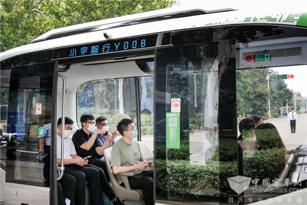 除了承装车间和试验场,融媒体采访团还现场试乘了宇通自动驾驶巴士小宇2.0,感受智慧出行的神奇与魅力。