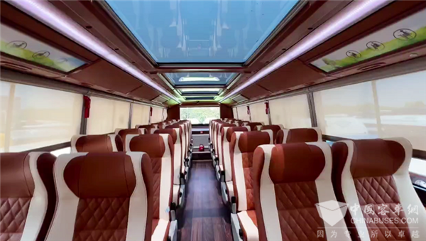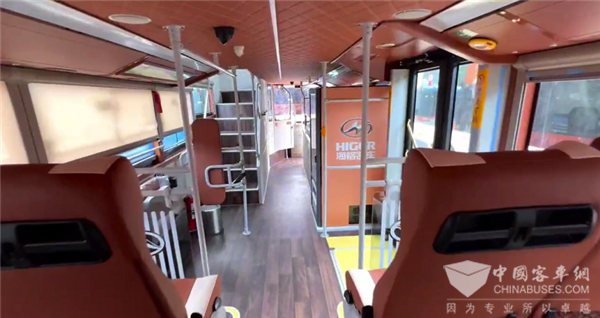 尹振表示,这也是海格客车技术团队在历经前期市场调研、与客户充分沟通下,为客户量身定制的方案,并致力将特色城市文化和城市风景元素融入到交通载体中,让车辆不仅外观别致,车内也“暗藏乾坤”,别具一格。首先车辆档次提升,豪华质感呈现上要到位,体现出城市形象;第二,从整体空间布局到内饰内在舒适质感、座椅人性关怀设计,都要进行细化考量,让乘客的乘坐舒适度和观光体验感更加不一样。此外,观光巴士还增设了饮水机、USB充电接口等各种便利化设施,从细节出发进一步提升乘坐体验。