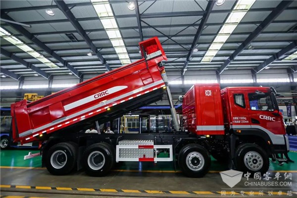 中车纯电动自卸式重卡,搭载360环视、双源转向、一体化中控大屏等前沿配置,整车“动力强劲、驾驶舒适、高效节能、安全可靠、运营成本低;此外,产品额定输出能力强、高效区占比最优、温升及防护等级处于行业领先水平。
