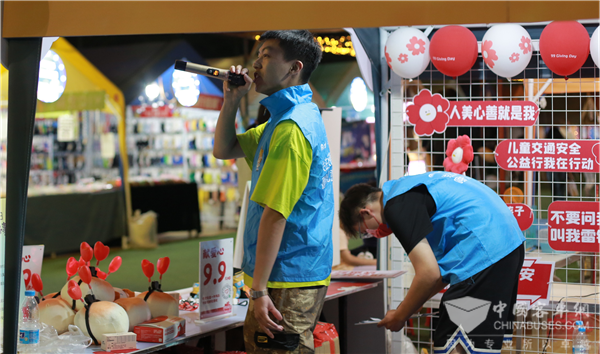 2022年9月7日至9日,搭载腾讯99公益日活动,宇通联合壹基金在郑州市奥体中心星光夜市发起了一场别开生面的“公益地摊”义卖行动,现场志愿者交通安全喊麦科普,组织交通安全游戏亲子体验频频吸引众多爱心人士驻足围观,带领孩子切身体验儿童交通安全公益项目。