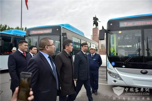 在吉尔吉斯斯坦,2019年吉尔吉斯斯坦政府采购的宇通ZK6108天然气客车更是得到了吉尔吉斯斯坦总统的亲自视察。