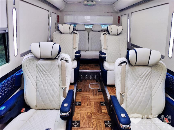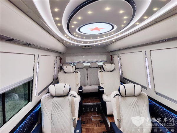 而星河版T7原装的高端打造就可满足用户大部分需求,不仅如此,宇通客车还能根据用户需求进行原厂定制。据介绍,根据用户需求,宇通还对此款星河版T7的副驾驶座椅、地板选用以及用户企业logo嵌入等方面做了定制化改装,打造成了符合用户期待的专属公商务客车。