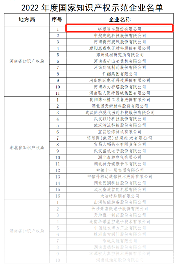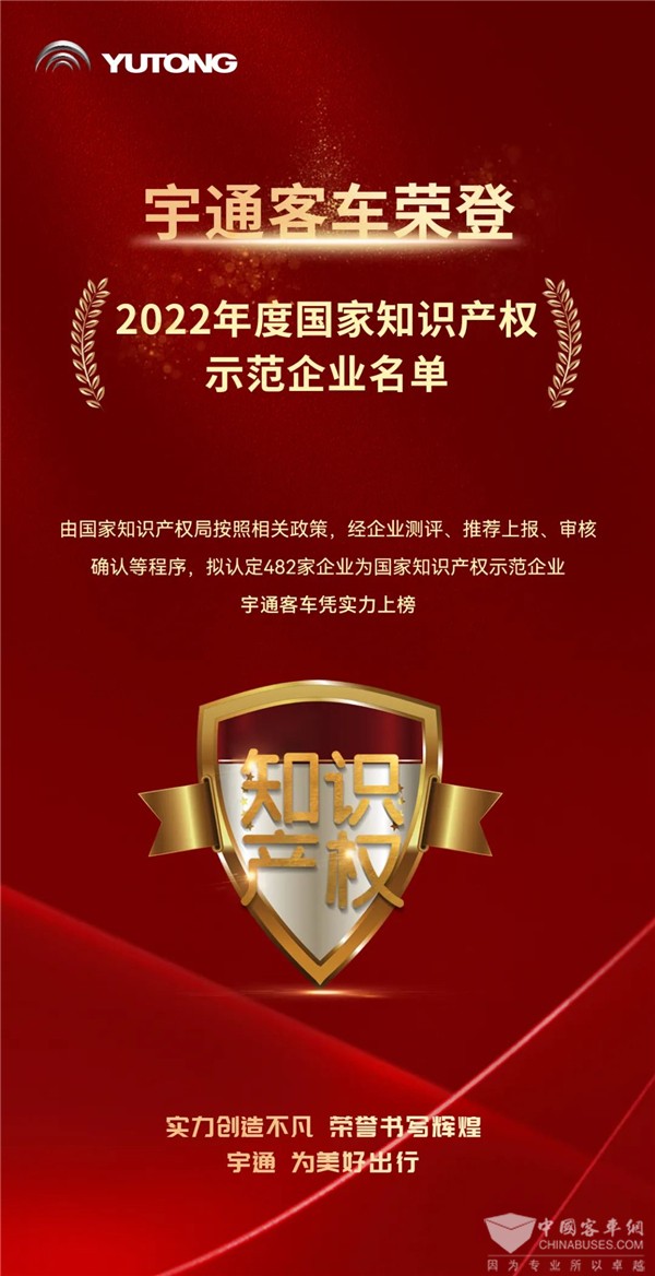 宇通客车荣登2022“国家知识产权示范企业”榜单!