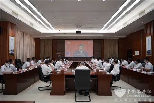 2022年10月16日上午,金龙客车党委在E栋1楼多功能厅召开党委理论学习中心组学习(扩大)会议,传达学习党的十九届七中全会精神,组织党员群众代表集中收看中国共产党第二十次全国代表大会开幕式。公司党委书记、总经理刘志军主持会议,公司党委委员、经营班子成员、纪委委员、党员高管、党支部书记和委员、团员和职工群众代表近40余人参加会议。