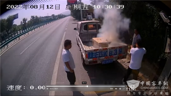 事情发生在2022年8月12日的上午,陕西渭南一辆拉载着油烟机的小货车在G310国道赤高路口突然起火,司机浑然不知还在一路疾行,路过的华州区第二运输公司公交车司机陈斌发现后,立即鸣笛警示。