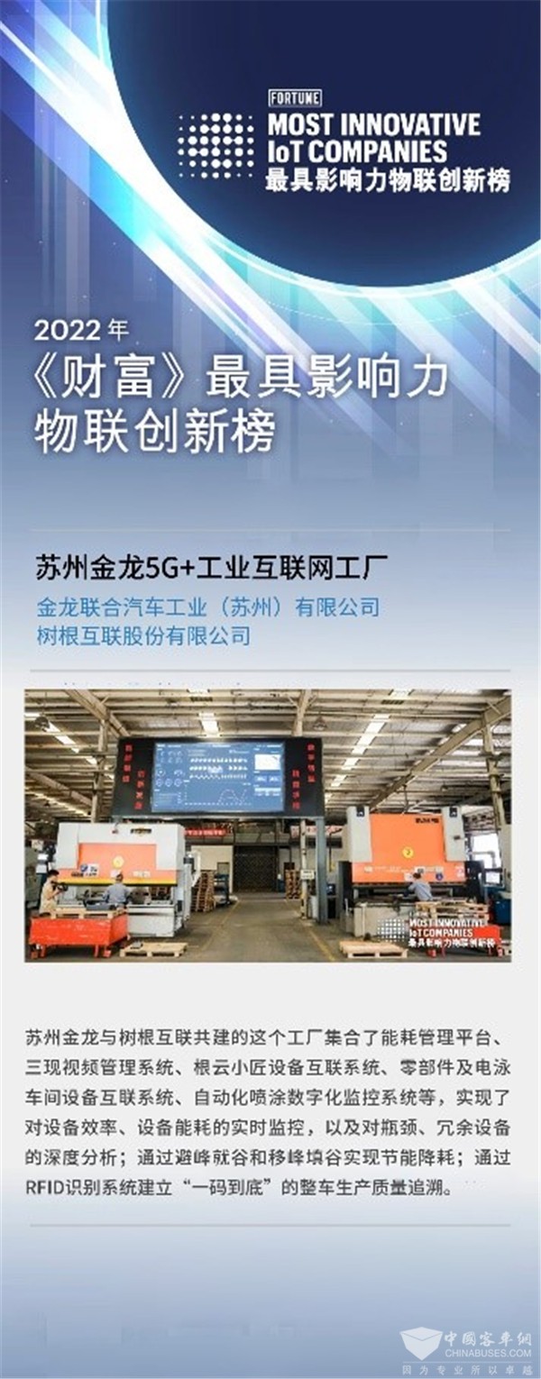 2022年《财富》最具影响力物联创新榜公布! 苏州金龙成唯一入选客车企业