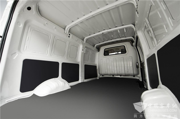 作为一辆货车,货厢非常关键。GLE570的车厢采用常见的封闭式设计,同时驾驶室与货厢之间也通过金属隔板完全隔开,但是中间却配有一个超大窗口,司机可以随时观察货箱内获的货物状态,且5.5立方米的超大载货空间,对于快递配送、商超的米面油菜品等的配送空间需求绰绰有余。货厢地板平整宽敞,货厢右侧为滑移门,方便侧边装卸货,尾门为上掀开式打开,装货轻松快捷。车身采用全承载加强笼式设计,前后超强防撞钢梁,车门双防撞梁,坚固安全路上行驶更放心。