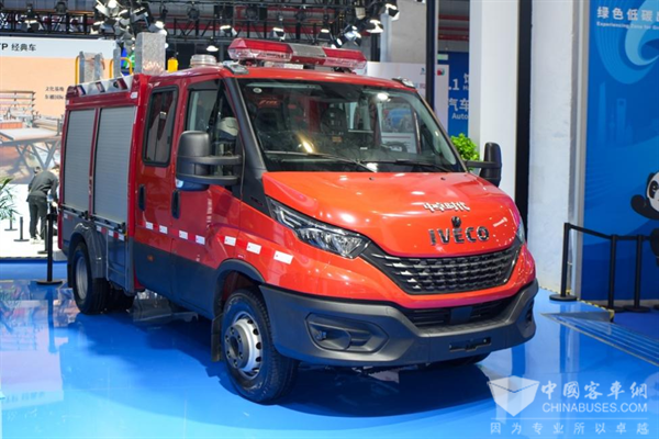 依维柯不仅提供车辆底盘,更通过高端智能改装解决方案来满足休闲生活及国计民生多场景的改装需求。为满足中国用户日益增长的高品质生活需要,进口依维柯提供房车、救护车、商务车、通讯指挥车及检测车等改装方案。进博会现场,由依维柯与改装厂戴德房车合作的URV房车,是一款跨界车型,年轻与运动结合、商务与居家融和、空间与灵活性兼顾、家与风景联通。另一台改装车型为北京中卓时代消防装备科技有限公司改装的压缩空气泡沫消防车,该车配备断轴取力器驱动后置式消防泵,整车尺寸精短、动力性能好、结构合理、造型时尚酷新,可广泛适用于各专业消防队、狭小街区、文物保护单位等场所,迅速扑救一般固体有机物质火灾。
