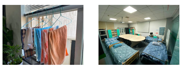 物资保障小组提前工作,争分夺秒寻找资源,连夜购买了“战疫”的基本生活物资:行军床、被褥、洗漱用品、衣架水桶等……公司党员突击队也加入了后勤保障支援队伍,承担起了生活物资管理和配发的重任。这些物资能够及时到位,离不开每一位工作人员和志愿者在幕后争分夺秒地响应需求,全力地确保物资运转和及时分配。