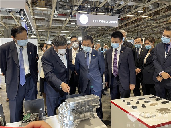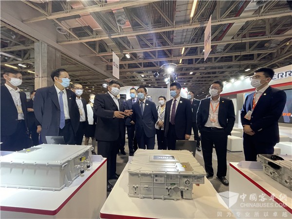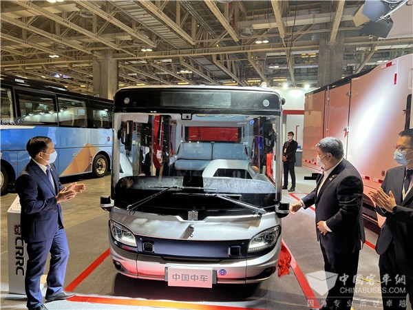 在400平米的展区内,中车自主研制的轻量化制动踏板总成、复合材料板弹簧、X6一体化底盘电池、C-Power 220S乘用车电驱系统、tDriver-DE5、tDriver-MD2021商用车电驱系统,tDriver-DE6、tDriver-FC12、tDriver-DM36控制总成,断开式集中驱动系统、整体式集中驱动系统、轮毂驱动系统以及无人驾驶微循环巴士小V、纯电动城配物流车和10米纯电动氢燃料电池客车等产品分五个区域依次排开,涵盖从“芯片-组件-器件-系统-整车”的新能源汽车全产业链,强大的自主阵容和前沿的创新技术,吸引了众多参展者驻足。
