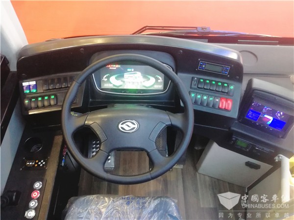 据XINGKONG.COM获悉,本次亮相辽洽会的氢燃料电池客车是黄海客车于2022年成功研发的最新产品,车长8.54米,车宽2.5米,车高3.45米,车辆集成控制器、整车控制器等核心部件均为黄海自主研发。车辆搭载65kw燃料电池系统,动力电池电量90.2千瓦时,同时装配6×145升气瓶组,最大储氢量870升,整车续航里程可达700公里以上。同时,车厢内部装配带软垫注塑座椅,自加热扶手杆等人性化设施,满足时下高端公交市场营运需求。