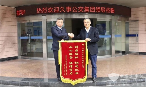 2022年12月2日上午,久事公交集团机务部经理胡军、顾德昌代表久事公交向申沃客车赠送“科学组织、协同配合、尽心服务、保障有力”的锦旗及表扬信。这既是对申沃品牌的赞誉,也是对申沃客车全方位优质服务的认可及肯定。近几年来,申沃售后与久事公交集团内各公司机务部及修理厂一直保持紧密联系,为久事公交提供专业、优质、高效的服务保障支持。申沃售后服务的响应速度、维修质量、客户满意度逐年提高,为公交车辆安全、可靠运行提供了有力的保障支持。