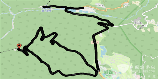 金龙客车率先测试11米燃料电池客车高海拔环境适应性能,采用额定功率110kW的燃料电池系统,在整车结构设计、零部件选型、整车控制策略等方面进行周密的设计与准备。云南玉龙雪山年平均气温为11.3℃,最冷月平均气温3.0℃,最热月平均气温17℃,实际最低温约-15℃。测试期间,车辆运营路线从玉龙雪山甘海子停车场(海拔3046米)出发,前往大索道下部站(海拔3356米)下客,同时等待游客上车,前往蓝月谷游览车乘车处(海拔2948米),再前往水月阁停车场(海拔2910米),最后返回甘海子停车场,期间不间断循环运营测试。