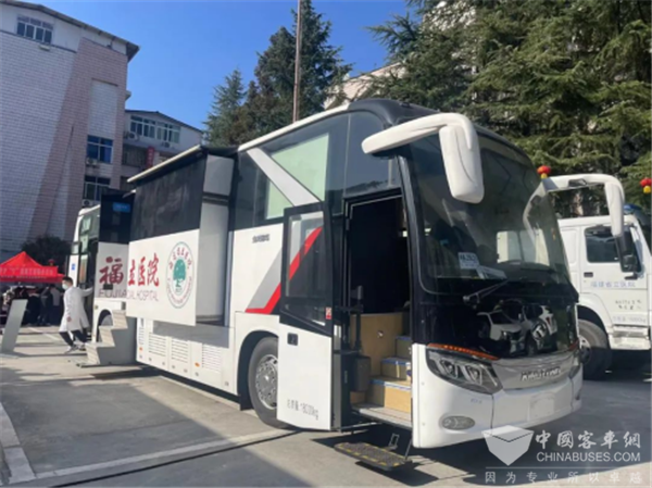 2022年2月25日上午,金龙客车移动CT医疗车在福建省立医院巡诊,它具有全身型方舱检查单元,为患者和医护人员设置了双通道,除了CT检查外,车上还配备血液检测仪、心脏复苏机、心电监护仪、呼吸机、恒温冰箱、新风系统、紫外线消杀设施等设备,能为医护人员工作提供更安全的保障,极大地减少交叉感染的风险。