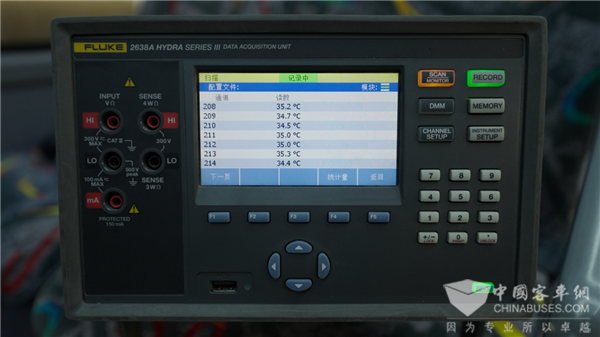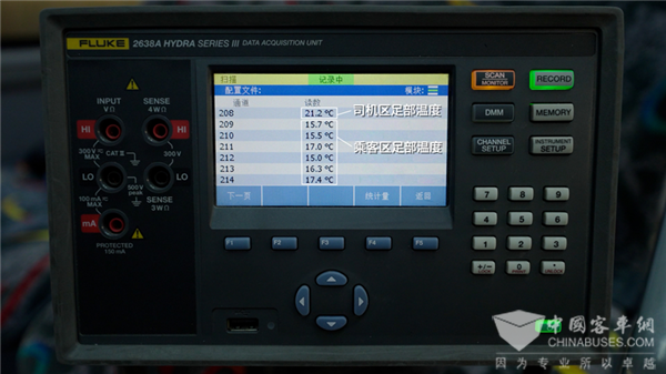 在实际高温使用场景中,车辆除了正常运转还必须能够实现车厢内快速降温,在这方面宇通结合零部件产业链优势,联合下属空调企业优化空调风道流场,让车厢制冷更快更均匀。正是基于此,在最为重要的空调降温测试环节中,“宇威”在40分钟时间内,就成功为车厢内降温27℃,这样的成绩非常给力。