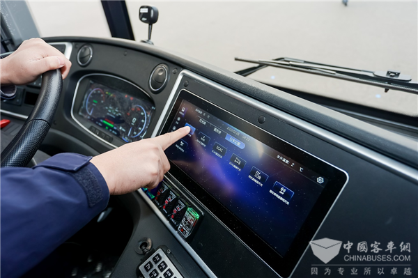 在驾驶舒适性方面,采用一体化包围设计驾驶室,全气囊三点式安全带司机椅,具有加热、通风、角度调节等功能,大大提升司机驾驶舒适性。在乘客区舒适性上,前桥独立悬架结构,后桥大跨距C型托架,整车进口德国大陆气囊,可提升乘客乘坐舒适性。