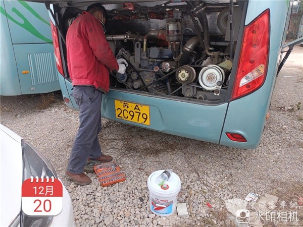 苏州金龙服务工程师为南京九方旅游客运有限公司车辆做春运服务