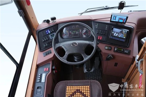 驾驶舱将复古美感与现代科技的结合展现得淋漓尽致,保留当下公交车驾驶舱布局,液晶显示等现代辅助设备镶嵌于复古风格之中,让驾驶员在不改变操作习惯的同时唤醒时代记忆,再次驭见经典。
