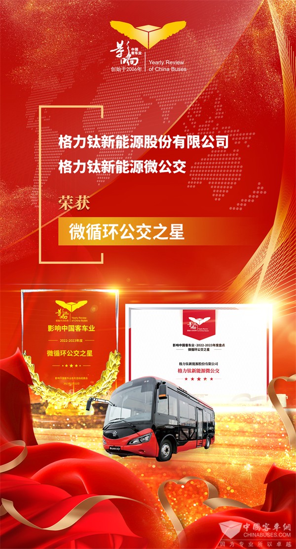 2023年2月22日,第17届影响客车业年度盘点活动在南京盛启。行业专家、学会代表、客车企业、公交客运及技术配套专家代表等齐聚一堂,共同见证了这一行业盛典。活动当晚,影响客车业年度盘点评选结果正式揭晓,凭借在细分市场的高光表现,格力钛新能源荣获2022-2023年度“微循环公交之星”和“氢燃料电池客车示范之星”两项殊荣。