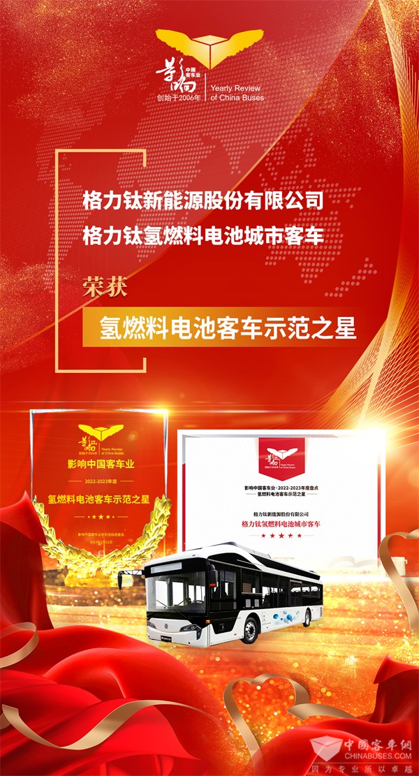 在2022年举办的第三届中国氢能与燃料电池汽车产业峰会暨年度颁奖典礼上,凭借高安全、长寿命的氢钛动力总成技术,格力钛氢燃料电池客车再次荣获“年度氢燃料电池汽车奖”,这既展现格力钛的品牌实力,也是行业对格力钛新能源氢钛技术与产品的肯定。