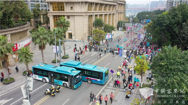 场外,105台中车电动新能源客车担当重任,化身为接驳车、摆渡车、收容车、赛道防撞车,在各自的岗位上展现着在国际赛事上的风采。凭借前沿化科技以及管家式星级服务,中车电动为此次国际赛事带来了绿色、高效、周到的保障方案,更为践行“双碳”战略、推动重庆绿色交通发展掀开崭新篇章,再造马拉松运动“低碳顶流”。