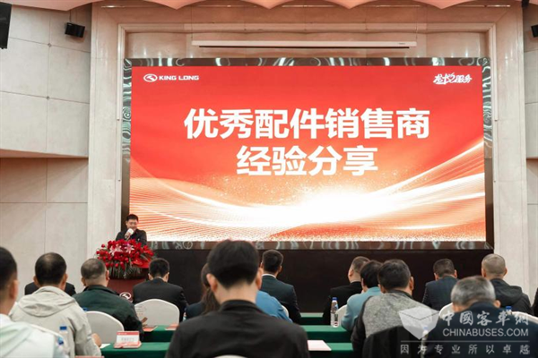 长期来,金龙“龙悦”服务品牌一直深受配件销售商的认可和信赖,本次会议中,优秀配件销售商代表在现场分享了与金龙合作的好成效,好模式。