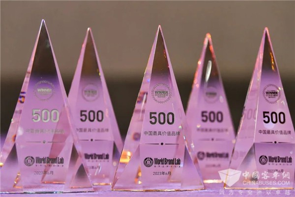2023年6月15日,由世界品牌实验室(World Brand Lab)主办的(第二十届)“世界品牌大会”在北京如期举行,2023年《中国500最具价值品牌》分析报告重磅出炉,宇通以829.07亿元的品牌价值再度荣耀上榜,位居2023年度最具价值品牌榜第110位,较上年排名上升一位,为中国品牌高质量发展树立新的典范与标杆。