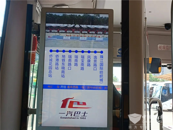 安凯G6新车还为乘客准备了一些别具心思的“小设计”。车厢内空调制冷效率高,为乘客隔绝盛夏热浪的同时,乘客还能根据自身的冷热感受调节空调出风口角度。车厢内正前方上部安装了一块27寸LCD液晶屏,可显示报站、温度、时间、宣传用语、服务用语等内容,让乘客感受到满满的关怀。