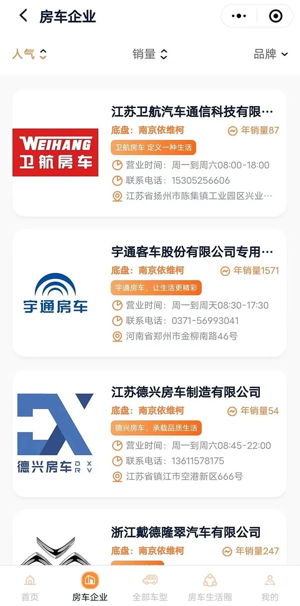 依家房车小程序2.0版本提供超专业的房车服务商,你可以按照人气和销量筛选,挑选最适合自己的房车。相信有了依维柯底盘改装的房车陪伴,房车家族的车友们一定可以快乐出发,收获最美的风景。