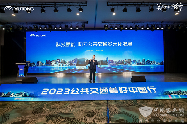 2023年7月20日,由宇通客车主办的“2023公共交通美好中国行——公共出行多元化发展研讨会”第二站走进甘肃兰州。来自交通运输部科学研究院以及甘肃、四川等全国多地的公交企业代表参会,共同探讨城市公共交通转型发展新思路、新思考,并通过优秀案例及产品、服务解决方案分享,为行业发展指明方向。