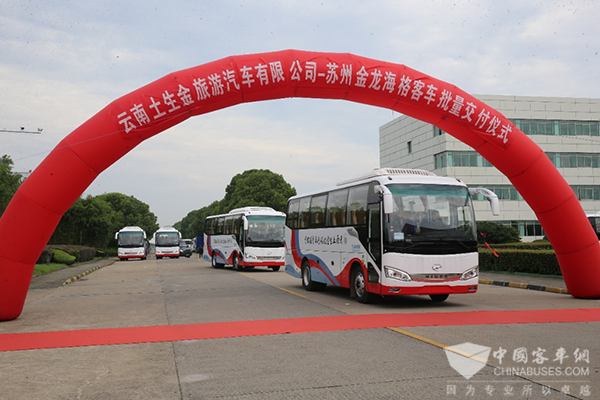 云南土生金旅游汽车有限公司(简称“云南土生金”)正是这样一家企业。近日,云南土生金一次性采购了15台苏州金龙海格途悦KLQ6889客车,以更安全、舒适、高效、智能的客运服务助推云南旅游服务品质升级。