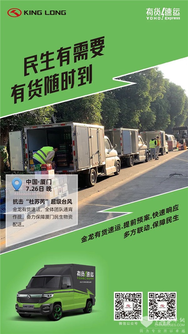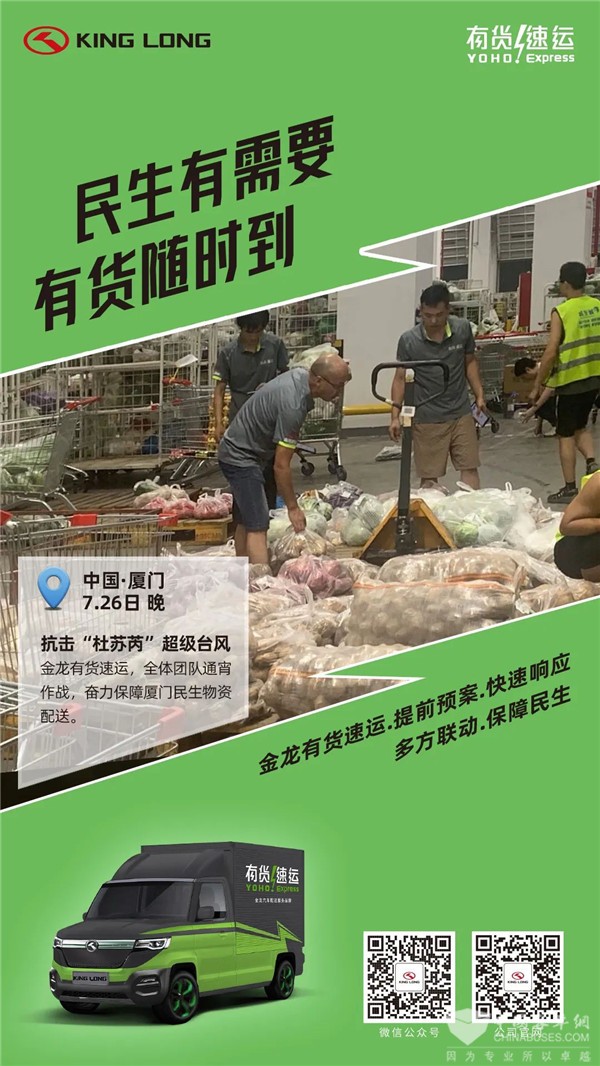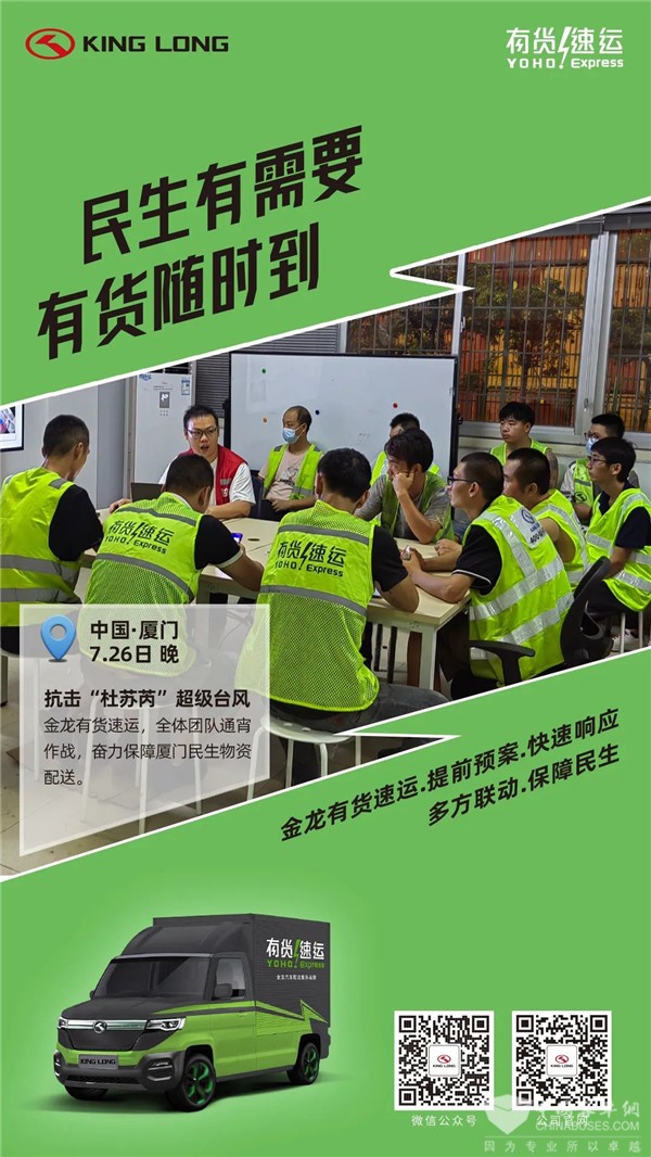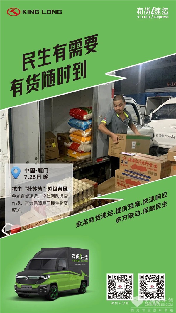 面对可能出现的交通拥堵、路面积水等困难情况,金龙有货速运结合了以往面对台风、洪涝防控时的经验,利用专业的互联网物流服务平台和高效的配送体系基础,安全、可靠的将物资及时送达,作为服务型制造企业标杆,金龙有货速运以实际行动为厦门防汛防台风贡献力量。
