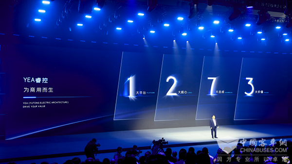 全新的睿控E平台历经十年不断迭代升级,集新一代高安全超能电池、多合一碳化硅动力域控制器、新一代高效轻量化集成式电驱桥、商用车多源超低温热泵、高效补能技术、智能网联商用车驾驶舱、PB级存储亿万级高算力智能网联云平台等七大总成于一体,实现了八大行业首创,将新能源商用车产业水平提高到了一个新的台阶。