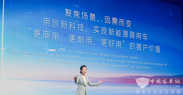 睿控E平台的问世是商用车科技的一次跃升和突破,实现了创新技术、整车平台、车型产品三者之间的完美融合。依托该平台,通过对关键技术的创新应用,能实现整车续航领先10%以上,运营成本降低20%,出勤率高达99%,最高满足150万公里稳定运行,7x24小时安心省心的全新价值体验,为客户带来更“更商用、更耐用、更好用”的价值体验。