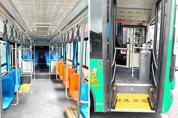 爱心座椅区域,方便老年人和小孩乘坐,配备不落地式扶手,给乘客提供更舒适的腿部空间,减少卫生死角,车厢更整洁卫生。