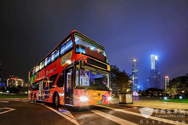 伴随着悠扬经典的粤语老歌传来,一辆醒目酷炫的双层巴士缓缓驶来,整车外观简约时尚,车身涂装靓丽吸睛,LED前、后大灯尽显科技未来感;更大的乘坐空间,更广阔的视野,为大家带来卓然不同的乘坐体验。