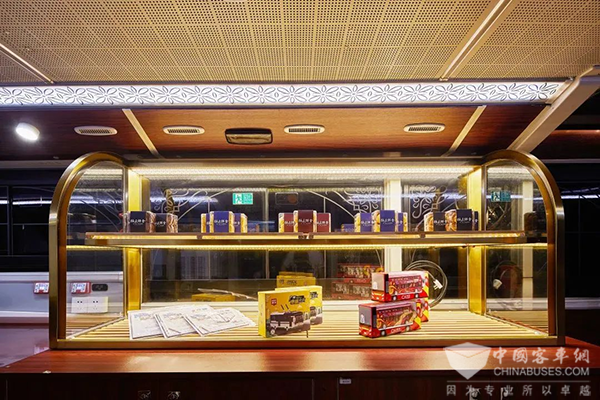 上车之后,一层是茶点备餐和产品周边区域。升级版的粤式茶点,搭配充满广州特色的奶茶,为您的行程别添一番风味,还可以收获精美的双层巴士模型,当做美好行程的留念。
