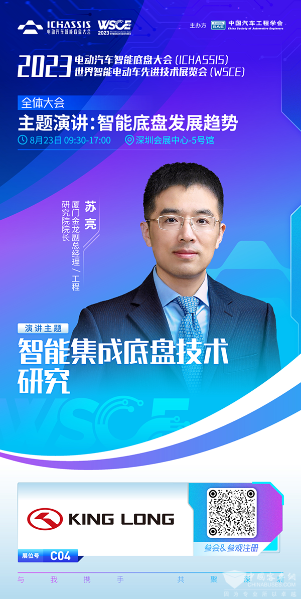 厦门金龙副总经理、工程院院长苏亮确认出席2023国际电动汽车智能底盘大会,并将在全体大会发表主题演讲。