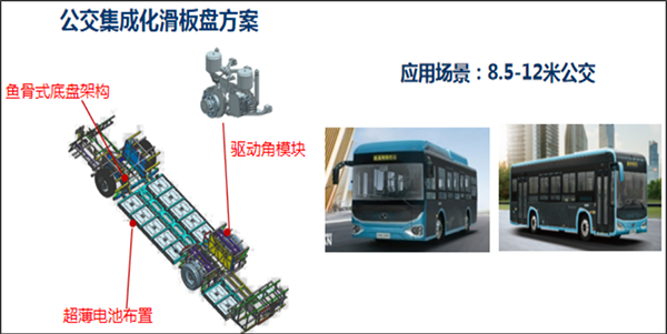 金龙开发的公交滑板底盘,集成金龙自主开发的超薄电池、独立悬架分布式驱动角模块、分布式驱动控制、线控转向与线控制动,在结构上集成金龙自主首创的鱼骨结构底盘架构,可率先在行业内实现公交智能滑板底盘的产业化落地!